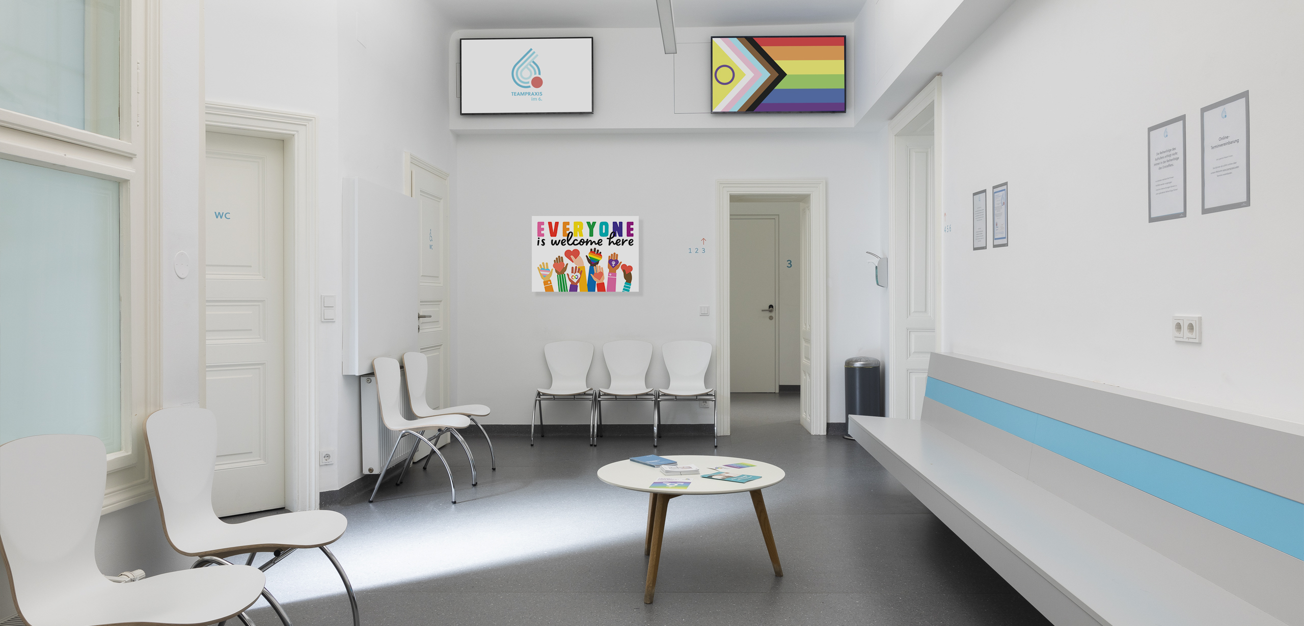 Die Teampraxis im 6. ist ein Primärversorgungszentrum für Allgemeinmedizin mit speziellen Schwerpunktsetzungen. Primärversorgungszentrum bedeutet, dass neben Ärztinnen auch andere Berufsgruppen in die Betreuung der Patientinnen eingebunden sind. In unserem Fall sind das diplomierte Gesundheits- und Krankenpflegerinnen, Pflegeassistentinnen, Sozialarbeiterinnen, Psychologinnen, Psychotherapeutinnen, Sexualberaterinnen, Diätologinnen und eine Juristin.